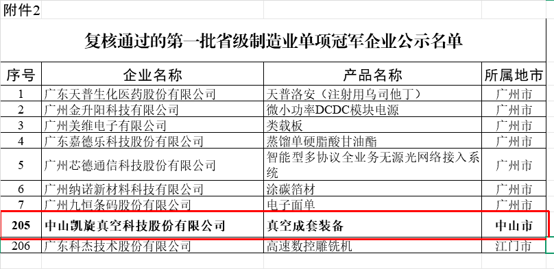 喜讯!凯旋真空成功通过广东省省级制造业单项冠军企业复核