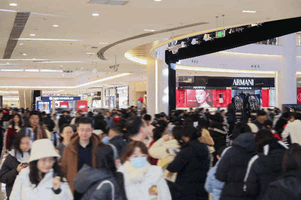 而在全年一些重要的节点上,金狮广场也通过与年轻人的情感共振,在一场场充满惊喜的体验中,获取快乐与归属感。2026跨年夜活动,金狮广场以“极光”为创意主线,创造了一场融合了心愿霸屏、极光派对、零点钟声等沉浸式体验的“AURORA GALA极光盛典”,成为城市级跨年首选目的地。同时首创的“LUCKY CAMERA”互动抽奖形式,更具趣味性,现场氛围热烈。据悉,活动当日的客流和销售额均达日常周末的2倍。