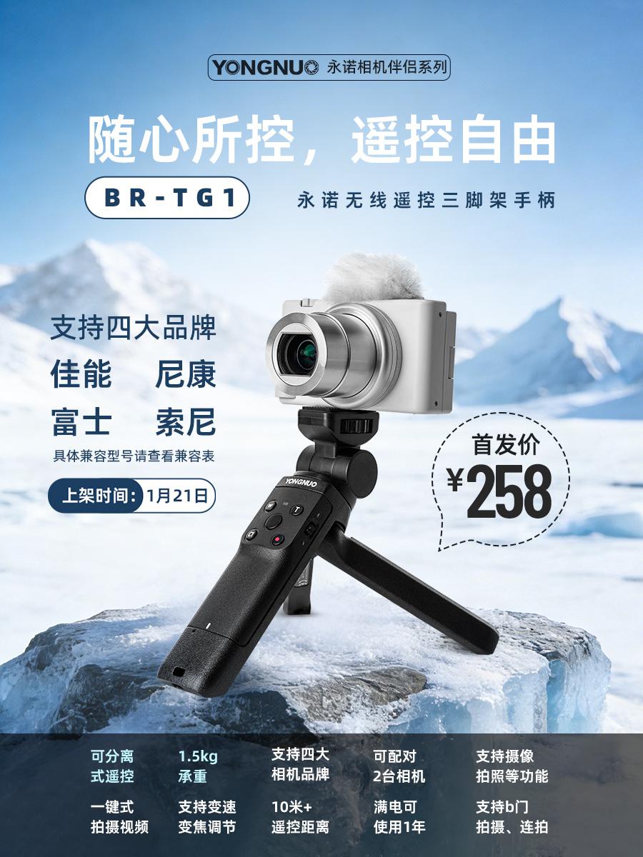 IT之家 1 月 14 日消息,永诺官方今日宣布推出一款 BR-TG1 无线遥控三脚架手柄新品,首发价 258 元,将于 1 月 21 日上市开售。