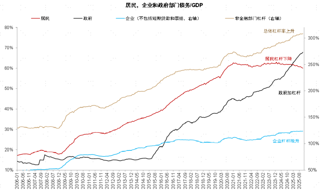 图表8:政府部门加杠杆,企业杠杆微升,居民杠杆基本持平