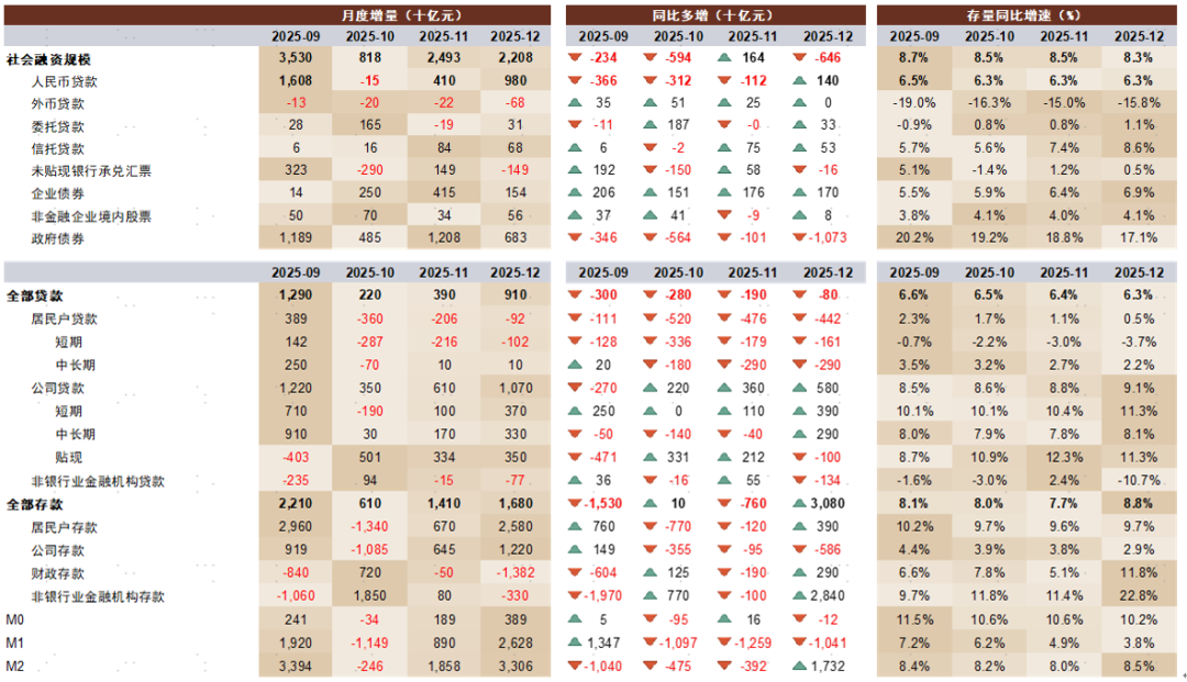 本文摘自2026年1月16日已经发布的《存款搬家重启,M1有望回升——12月社融数据点评》,如需获取全文请联系中金银行团队或登录中金点睛