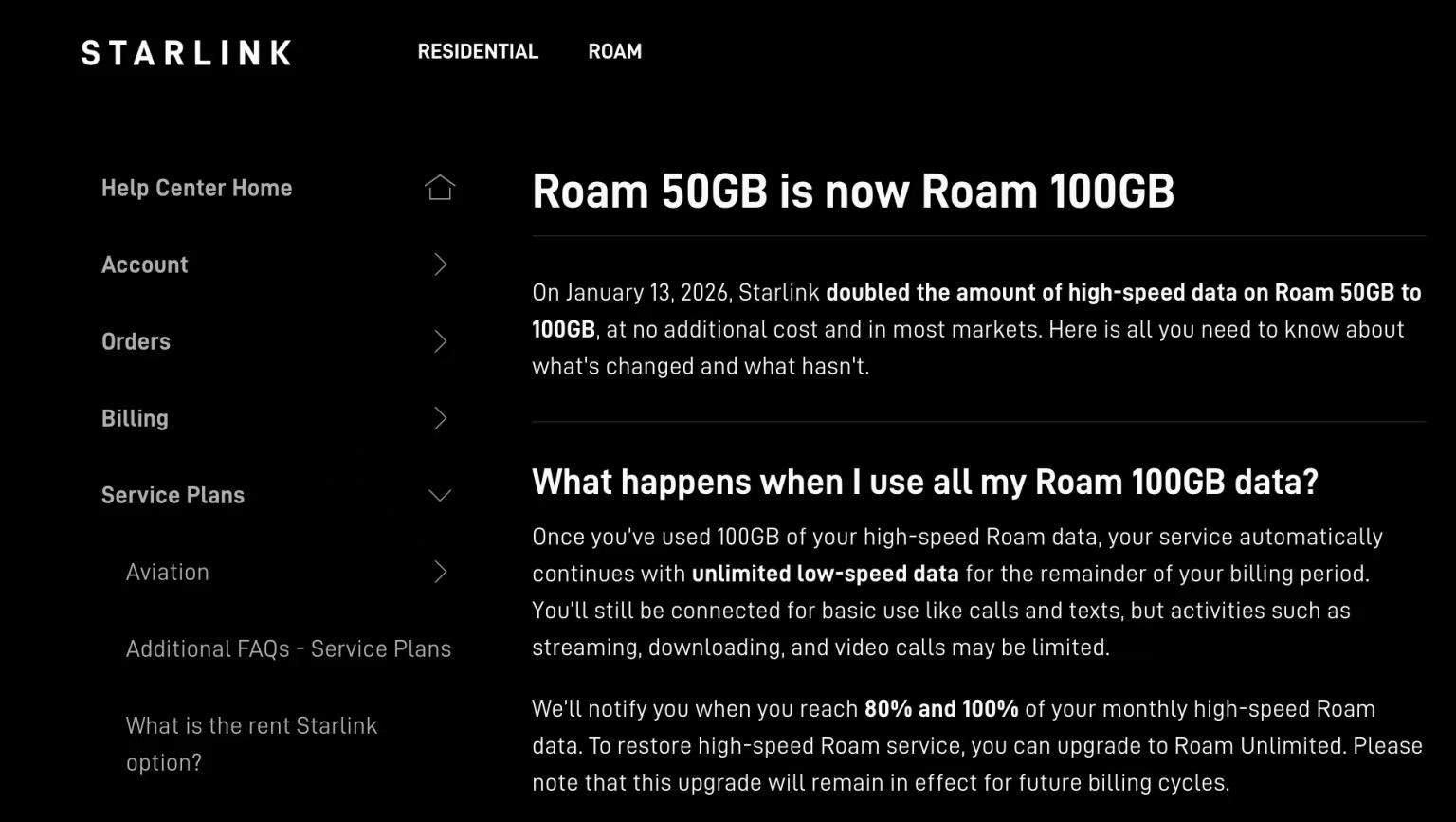 相比之下,升级之前的 50GB 套餐则要求用户按1美元/GB 的价格为额外数据付费,否则 SpaceX 将在当月剩余时间内切断用户的访问权限。