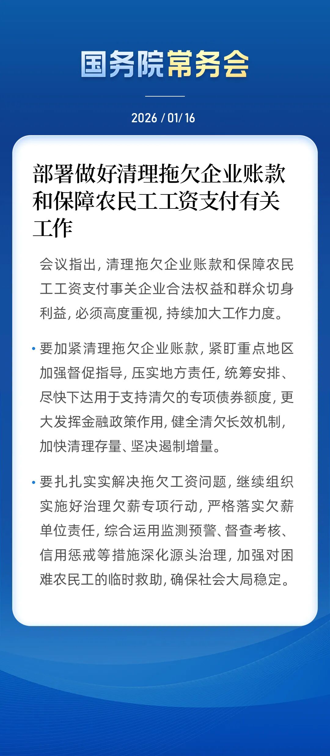 国常会部署做好清理拖欠企业账款和保障农民工工资支付有关工作