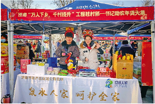 一村富不算富,村村富才是幸福路。近年来,济南市大力推进村党组织“跨村联建”,组建起192个“第一书记帮扶组团”,确定31个联合共建项目由优秀第一书记自荐报名、“揭榜挂帅”,以第一书记为牵引整合各方面帮扶力量齐抓共管,形成了“组团帮片区、示范带全局”的良好局面;还与京东集团开设京东商城“第一书记助农馆”,连续举办年货大集、四季大集,带动开展“第一书记助农大集”进社区、进景区、进园区活动310余场,推动973个帮扶村农产品进入262个城市社区,带动组建280家“强村公司”、“共富联社”,推动3271个村优化整合为741个党建联建片区……从“单打独斗”到“区域共富”,从“单兵作战”到“携手共进”,“千村提升”工程通过发挥党建引领作用,统一配置土地、资金、技术、人才等各类要素,形成了乡村全面振兴的叠加优势、集群效应。