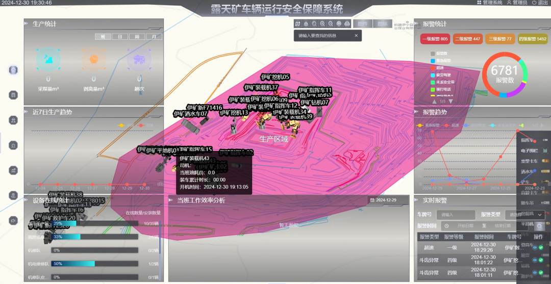 国源电力大南湖二矿车载卡调系统是公司露天矿市场的重点战略性项目,涵盖车辆监控与卡车调度指挥生产作业、高精度定位、超速报警、防碰撞预警、电子围栏报警、矿区一张图管理、轨迹查询、语音通讯、紧急呼叫、人脸识别、指纹检测、设备断电报警、360环视监控、右侧盲区监控及驾驶员行为分析等功能,可及时有效远程监控驾驶员违规行为,并完成智能运输安全生产监控系统的接口标准化开发,按要求将数据上传至国家能源集团,同时对接无人驾驶平台数据实现共享,应用效果良好,满足了客户需求。