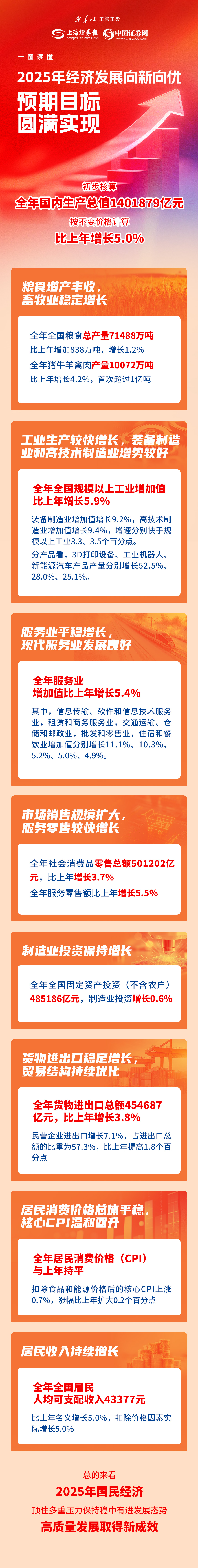 2025年,面对国内外经济环境的复杂变化,国民经济运行顶压前行、向新向优,高质量发展取得新成效,经济社会发展主要目标任务圆满实现,“十四五”胜利收官。