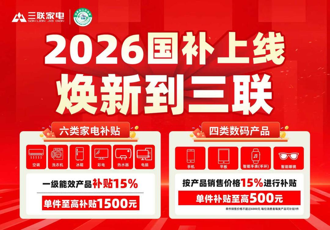 根据最新政策,个人消费者购买符合一级能效标准的冰箱、洗衣机、电视、空调、热水器、电脑等6类家电可享受最终售价15%的补贴,每类产品限补1件。手机、平板、智能手表(手环)、智能眼镜4类数码产品给予成交价15%的补贴,单件最高补贴500元。相较于2025年,今年国补呈现两大变化:一是补贴范围向高附加值品类倾斜,新增智能眼镜等潮流产品;二是能效标准收紧,二级以下产品不再享受补贴。三联家电敏锐捕捉政策风向,率先在店内设立“绿色能效体验区”,并配备专业导购团队,帮助消费者精准匹配需求。