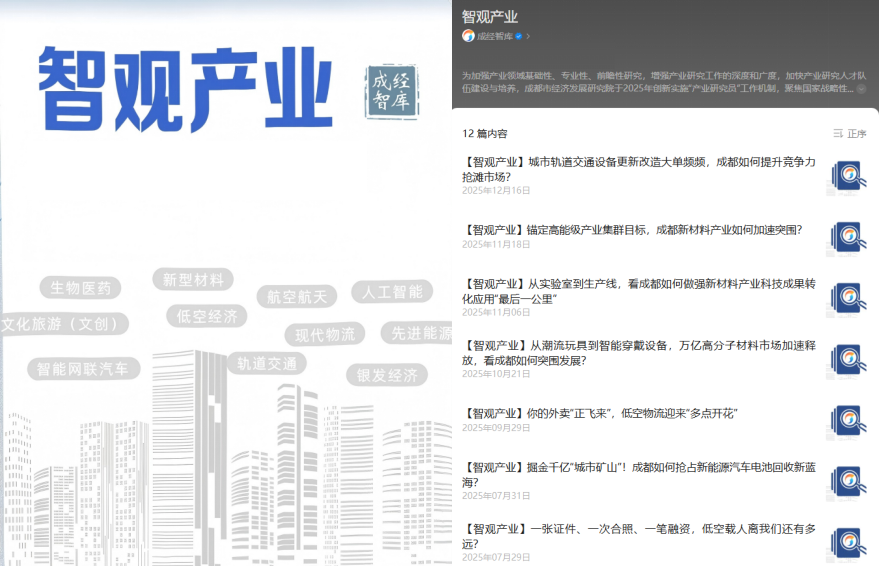 眼下,具身智能、低空经济(886067)、生物制造、量子通信等产业正在成为城市竞逐的新赛道。针对这些领域,成都市经济发展研究院近两年完成了《成都抢占人形机器人(886069)产业发展高地的建议》《人工智能(885728)赋能政务应用的调研与思考》《一张证件、一次合照、一笔融资,低空载人离我们还有多远?》《从完善基础设施网络出发,看成都如何拓展氢能应用场景》等专题报告,深入新兴支柱产业和未来产业开展研究,为成都系统推进产业体系整体性跃升提供了清晰的“施工图”。