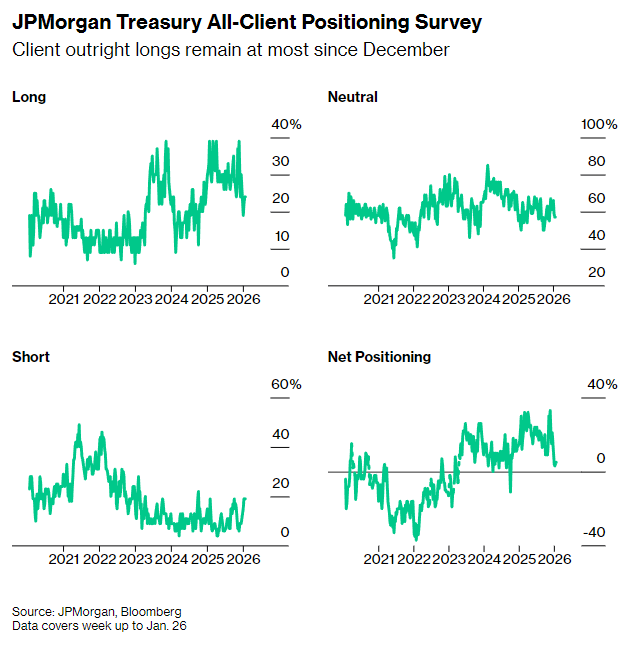 截至1月26日当周,投资者情绪保持不变,多头仓位维持在24个百分点的去年12月以来高位。净多头仓位维持在5个百分点。