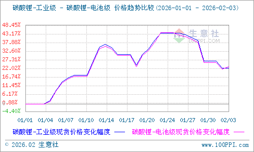 据生意社商品行情分析系统:近期碳酸锂价格呈现“先涨后跌、波动加剧”的显著特征,截至2月3日,生意社电池级碳酸锂基准价146000元/吨,较年内最高点(01月23日172000元/吨)下跌15.12%,环比上涨22.28%。