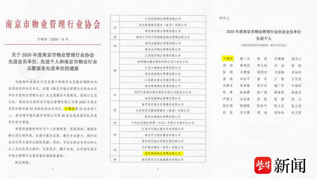 扬子晚报网2月13日讯(通讯员 杨凯丽 记者 张可)根据南京市物业管理(885915)行业协会《关于2025年度先进会员单位、先进个人和南京市物业行业志愿服务先进单位的通报》,壹城物业被授予“先进会员单位”称号,总经理卞建民获评“先进个人”。