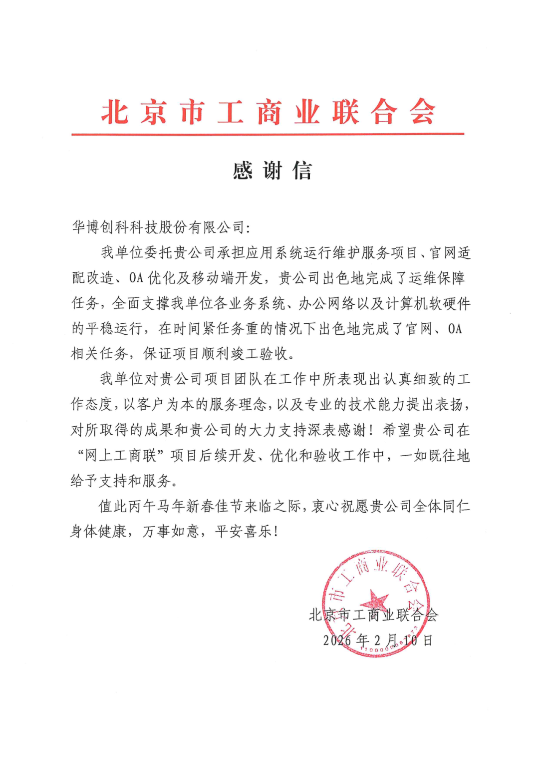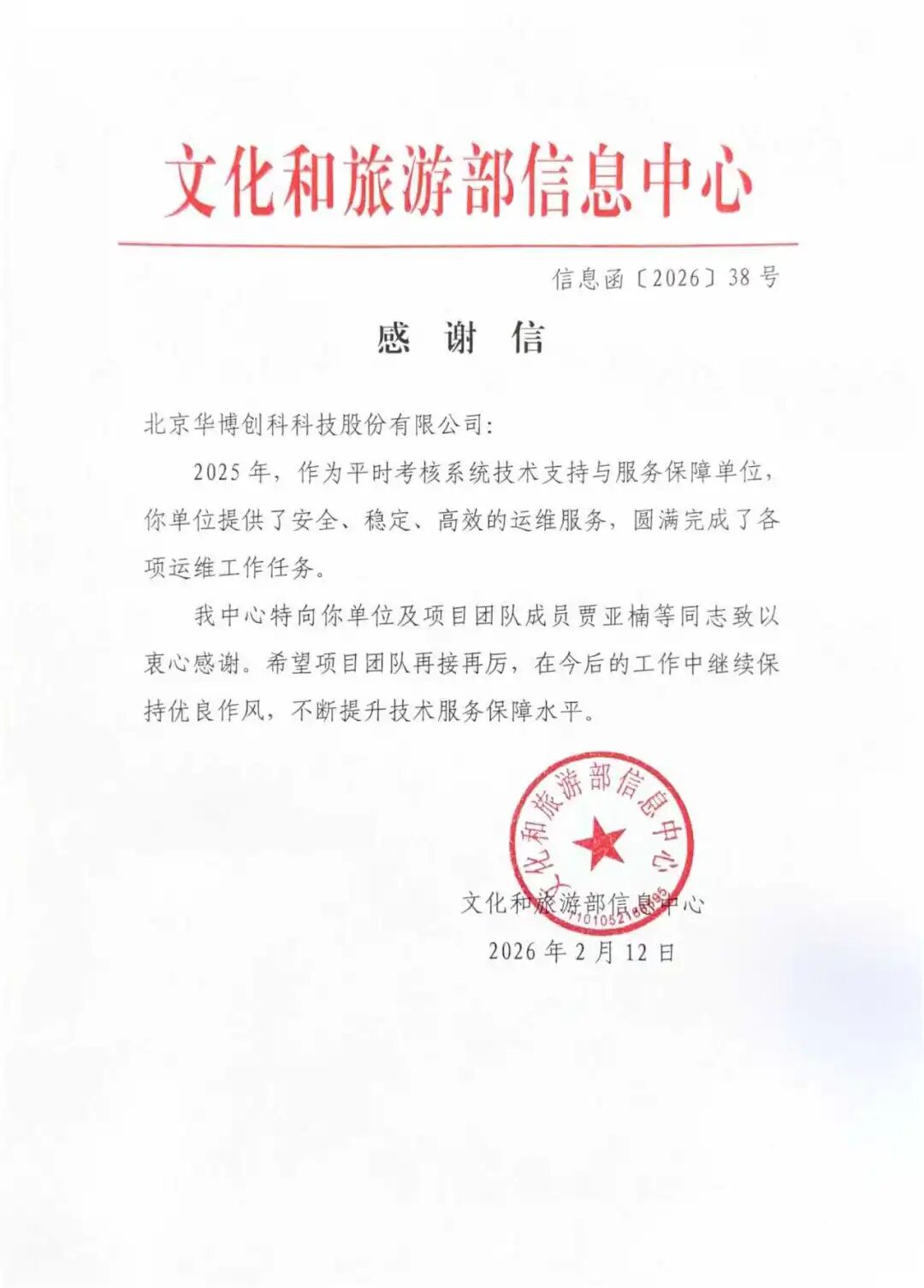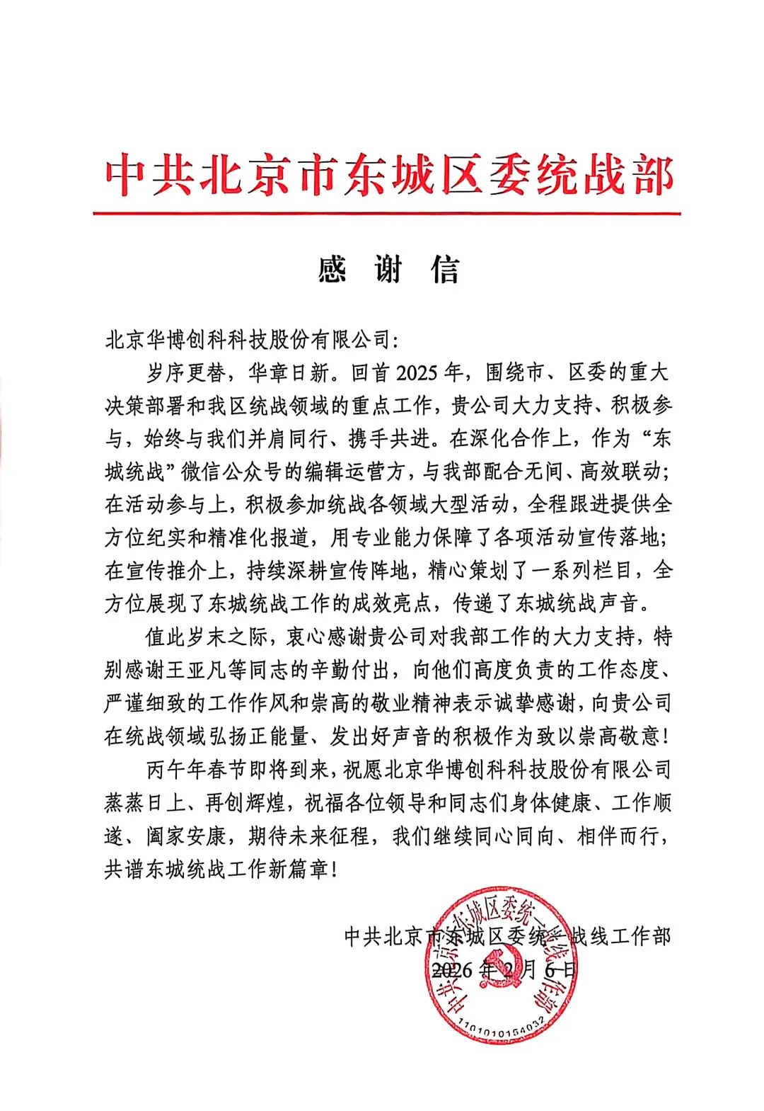 近日,北京华博创科科技股份有限公司荣获21封来自党政机关、民主党派、事业单位及社会组织的感谢信,高度肯定公司在2025年度提供的高质量技术服务与专业支持。发感谢信的单位包括: