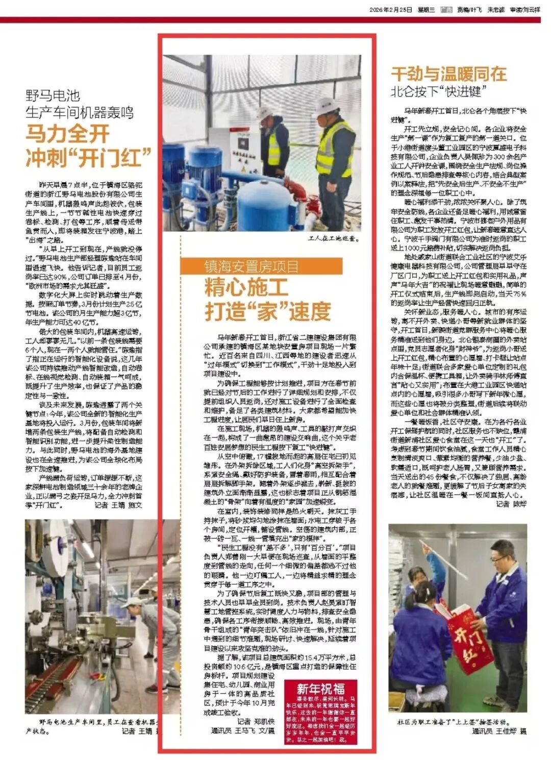 节后复工复产按下“快进键”,重点民生工程加速推进。2月24日,集团所属浙江二建承建的镇海区九龙湖安置房项目现场迅速恢复繁忙有序的施工节奏。百余名来自四川、江西等地的建设者迅速从“过年模式”切换到“工作模式”,全面投入到项目建设中。现场机械轰鸣、工序衔接紧凑,呈现出开局即冲刺的奋进态势。项目复工复产情况获宁波晚报、甬派等媒体关注报道。