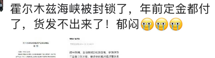 比如他的一个朋友,做的是伊朗玫瑰精油的生意,年前已经付了订金,到现在货还在伊朗,出不了港,“没办法,他只能等下去。”