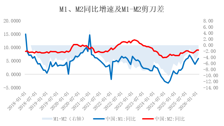2月金融数据整体呈现“总量平稳,结构分化”的特征,社融与信贷总量均好于市场预期。从社融看,财政积极定调下,今年财政节奏依然靠前,但受春节与基数影响,政府债对当月社融的支撑作用有所减弱。从信贷看,企业部门表现强于居民部门,企业端主动性资本开支意愿边际改善,中长期贷款同比由降转升,短端贷款增量亦创近五年新高;而居民端对加杠杆仍延续谨慎心态,消费(883434)、购房需求较为低迷。货币供应方面,M1增速延续回升趋势,M2增速保持高位,M2-M1剪刀差持续收窄,反映出资金活化程度进一步改善。