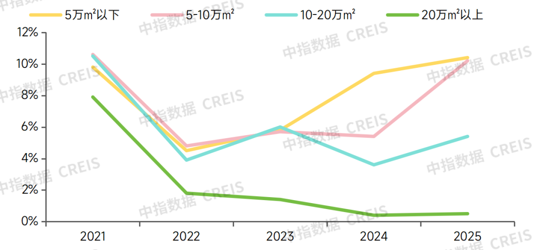图10:2021-2025年40城成交宅地不同规划建面宗数占比