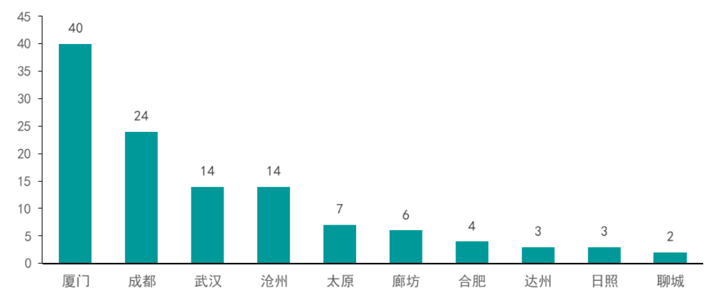 ▍宅地出让金:厦门、成都、武汉宅地出让金均超10亿元,排名前三