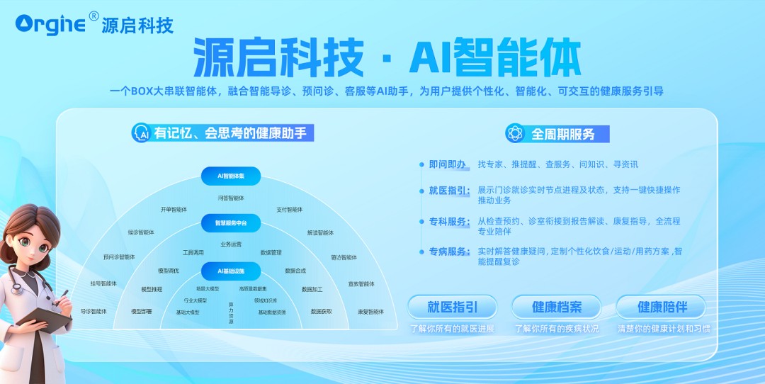 源启科技作为国内领先的医疗信息化解决方案提供商,公司以“用AI重构医疗服务(881175)体验”为核心理念,在医疗AI领域构建了“技术研发—场景验证—规模化落地”的完整闭环,形成了覆盖患者、科室、医生的三层智能服务体系: