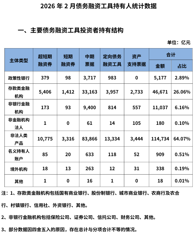 【大河财立方消息】3月31日,中国银行(HK3988)间市场交易商协会披露2026年2月债务融资工具发行统计数据。