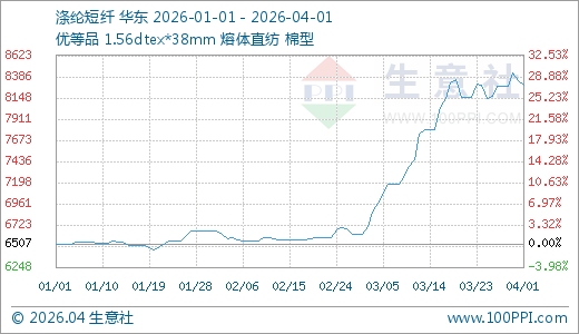 涤纶短纤04月01日最新价格8291.12元/吨,最近20天上涨7.04%,30天上涨23.69%,60天上涨24.68%,90天上涨27.41%。