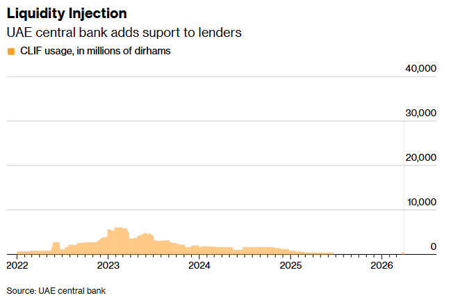 杰富瑞分析师估计,阿联酋央行已向银行体系注入超过300亿迪拉姆(约合82亿美元)的流动性,以帮助抵御中东战争带来的影响。杰富瑞中东欧、中东和非洲地区(EMEA)股票研究主管Naresh Bilandani周四在一份致客户的报告中写道,来自阿联酋央行的数据表明,商业贷款机构使用了一种名为“或有流动性保险工具”(Contingent Liquidity Insurance Facility,简称CLIF)的工具。该工具于2022年推出。