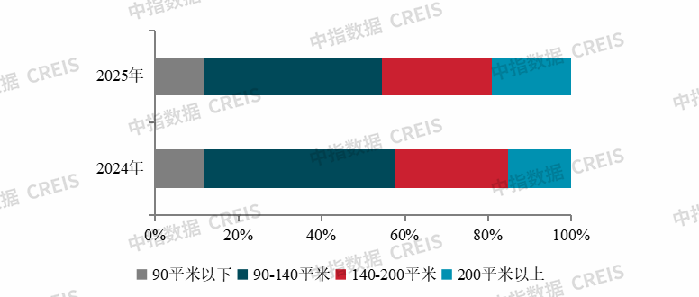 图3:2024、2025年30家经营活跃企业重点项目各面积段销售占比