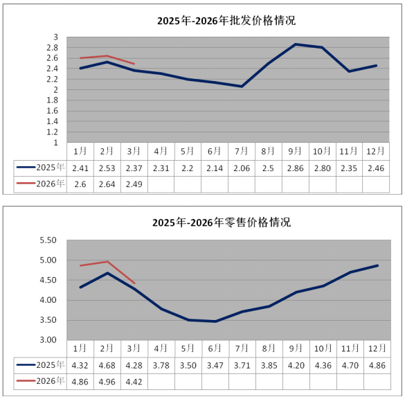 2026年1-3月,蔬菜整体价格走势与往年基本相同,季节性因素仍然是主导价格变动的主要因素,受季节性和节日因素影响,蔬菜整体价格上涨。