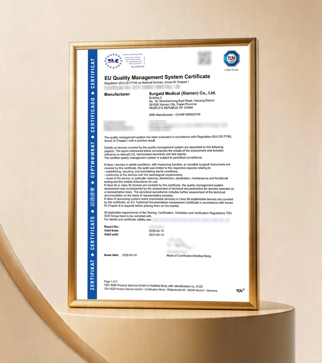 欧盟MDR法规于2021年5月全面实施,取代此前的医疗器械(881144)指令(MDD)和有源植入类医疗器械(881144)指令(AIMDD),在临床评价、上市后监管、产品可追溯性及技术文件审核等方面设置了更为严苛的准入门槛,被视为当前全球医疗器械(881144)领域要求最严格、认可度最高的法规之一。能够通过以严谨著称的T V南德审核并获得MDR证书,意味着企业在产品安全有效性、质量体系稳定性及全生命周期(883436)管控能力等方面已达到国际先进水平。