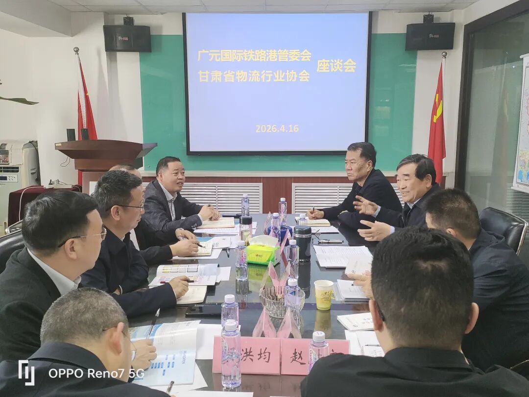 广元国际铁路港管委会副主任刘俊、丁勇及相关部门负责人,广元物流集团副总经理唐映勇;协会监事长、甘肃商业储运总公司董事长吴铭,党支部书记、专职副会长宋光奇,秘书长陈斌参加了座谈交流。