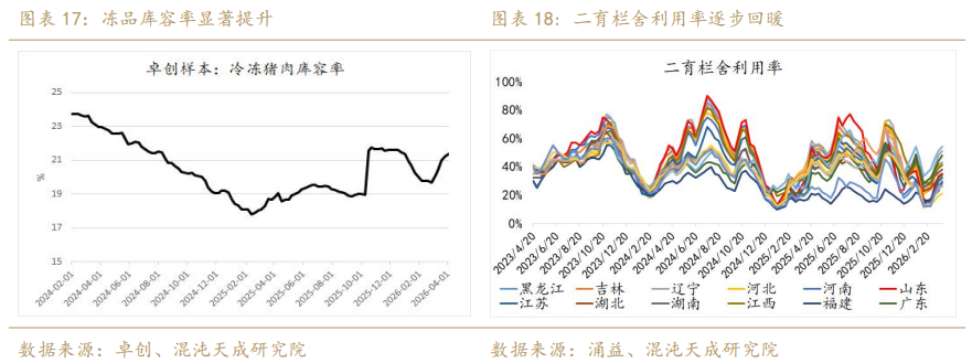 需求端,宰量数据高企为样本规模化与供应增长的双重作用,并非实际销量增长。从白条与毛猪价差历史低位来看,26年一季度需求同比下滑明显。投机角度,本周冻品入库率与二育栏舍利用率均显著上涨,近端猪价虽获得支撑,但需警惕抄底导致的矛盾后移。