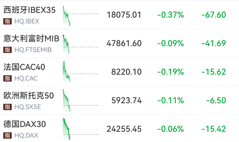 与此同时,欧洲主要股指震荡翻绿。