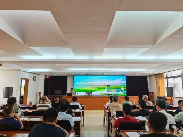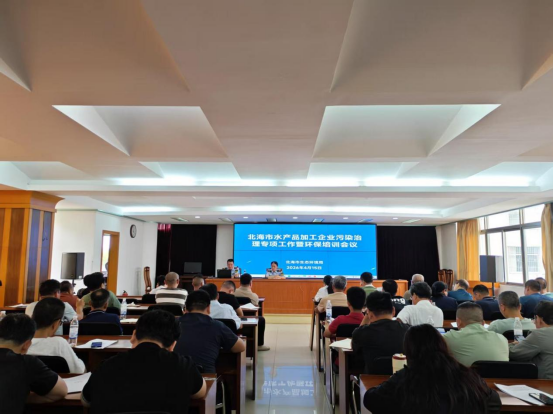 为全面压实水产品加工企业生态环境保护主体责任,破解行业废水排放突出问题,助力北海水产加工产业绿色高质量发展,4月中旬,北海市生态环境局组织召开全市水产品加工企业污染治理专项工作暨环保培训会议。市生态环境局各派出机构负责人、市生态环境执法支队和各主要水产品加工企业代表共80余人参加会议。
