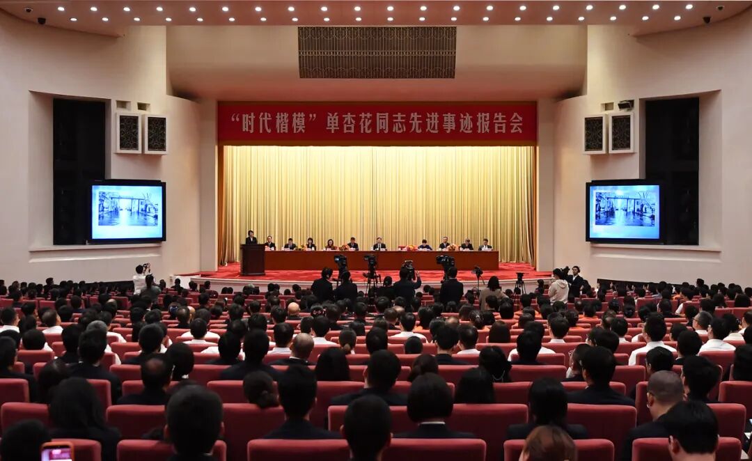 4月24日,中央宣传部、科技部、交通运输部、全国妇联、中国科协、中国国家铁路集团有限公司在北京人民大会堂举行“时代楷模”单杏花同志先进事迹报告会。在京党政机关干部、铁路职工、科技工作者、交通运输工作者、铁路公安干警代表,以及首都高校学生代表700余人参加报告会。