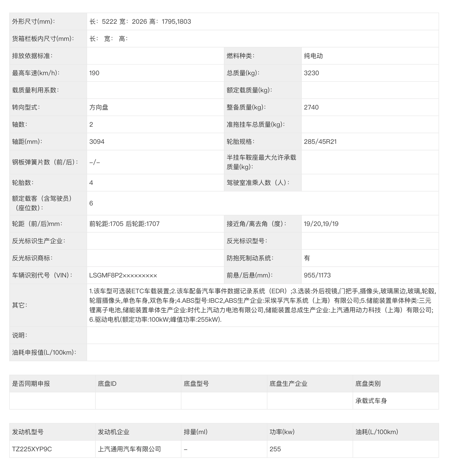 申报信息显示,这款新车长宽高分别为5222/2026/1795或1799或1803mm,轴距3094mm,提供单/双电机两种动力。