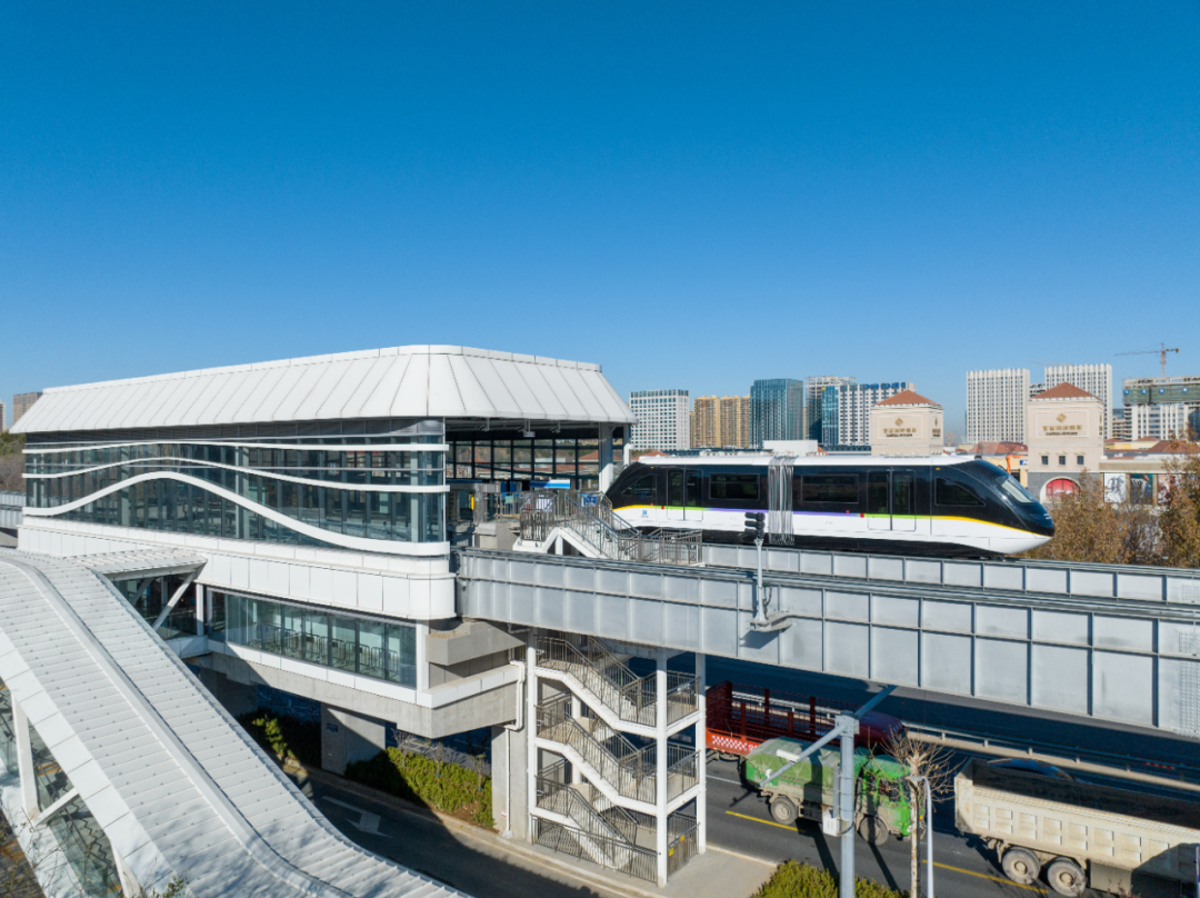 济南云巴线路全长30.55公里,全线采用高架敷设,共设车站32座,形成环绕高新东区的闭合环线。线路途经高新区和历城区,串联起唐冶、孙村、两河、庄科四大片区,连接多个产业园区,有效破解了该区域长期以来面临的大运量轨道交通覆盖不足的难题,为沿线居民和企业职工提供了准点、高效的“最后一公里”出行解决方案。