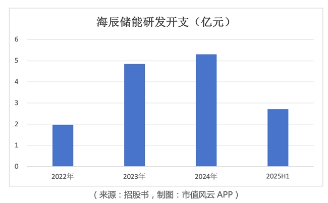 2022-2024年以及今年上半年,公司研发费用累计近15亿元。从绝对金额来看,这一投入远低于动力电池巨头同期的研发规模——某头部动力电池企业2023年单年研发投入就超百亿,但两者的研发效能却有着本质区别:巨头的研发资金需分摊到动力电池、储能电池、固态电池等多条技术路线,而海辰储能的每一分研发经费,都精准转化为储能领域的技术突破。