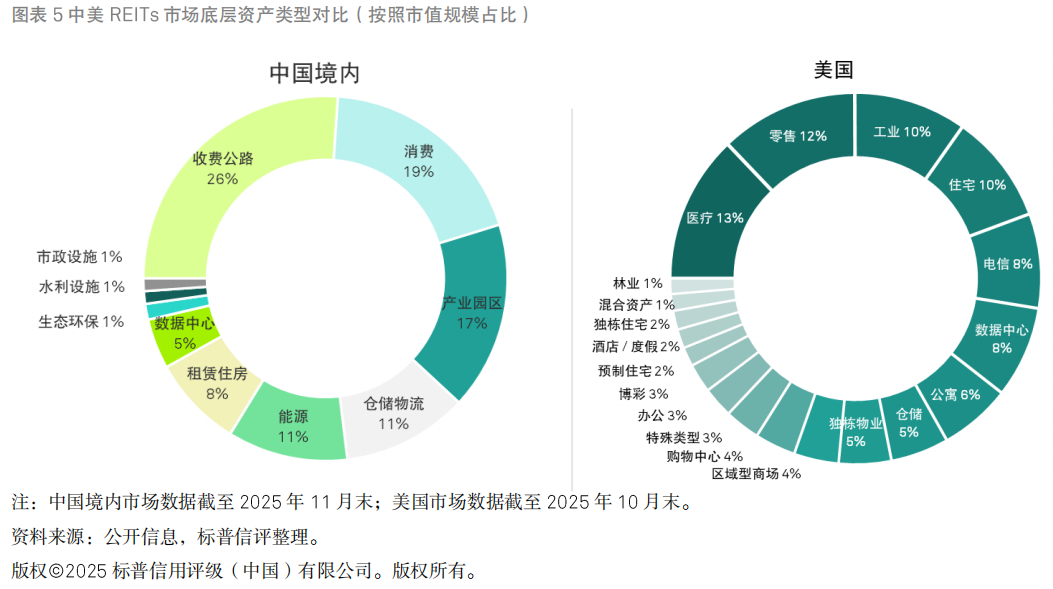 与此同时,近期国内REITs市场迎来多项里程碑式的新政策。2025年11月28日,中国证监会发布《中国证监会关于推出商业不动产投资信托基金试点的公告(征求意见稿)》(简称“商业不动产REITs试点”),首次提出了“商业不动产 REITs” 的产品框架与监管规则; 2025年12月1日,国家发展改革委办公厅印发《基础设施领域不动产投资信托基金(REITs)项目行业范围清单(2025年版)》(简称“基础设施REITs行业扩围2025版”),将基础设施REITs项目的行业范围拓展至 15 大类,新增商业办公设施和城市更新设施两大类,并对原有的消费基础设施的范围进行再次扩容。