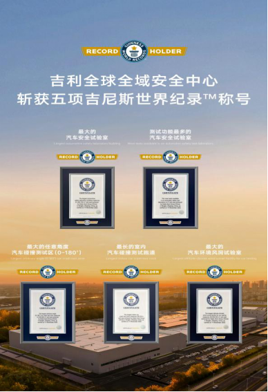 12月12日,吉利全球全域安全中心正式揭幕,该中心投资20亿,面积超8万平方米,具备27大类测试能力,覆盖全域安全技术验证。并一举创下五项吉尼斯世界纪录,包括全球最大的汽车安全试验室、最长的室内碰撞测试跑道、最大的环境风洞、最大的任意角度碰撞测试区以及测试功能最多的安全试验室。