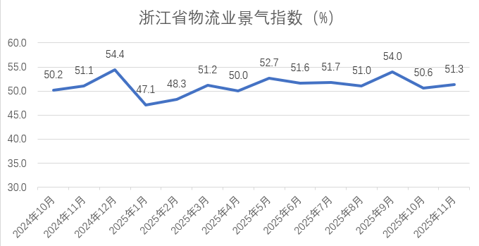 【指数简报】2025年11月浙江省物流业景气指数为51.33%
