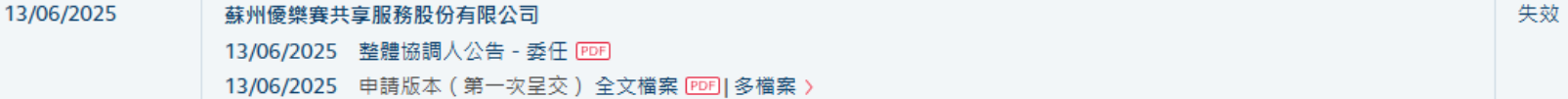 苏州优乐赛共享服务股份有限公司(简称:优乐赛)于6月13日所递交的港股招股书满6个月,于12月13日失效,递表时中信建投国际为其独家保荐人。