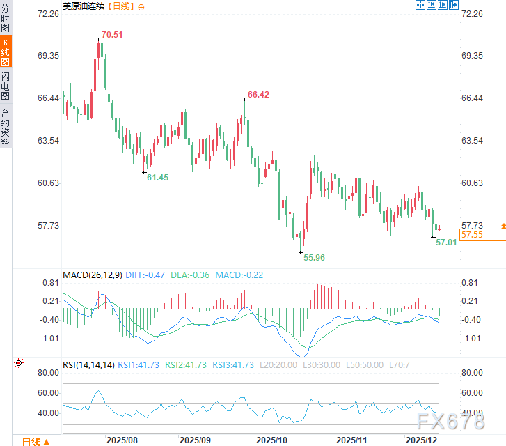 油价的下方支撑将因这一新的不确定性而变得更加稳固,但上方突破则需要更实质性的供应中断或冲突升级来驱动。交易员需要为可能因该地区新闻而增加的短期波动做好准备。周一(12月15日)美原油价格小幅上涨,涨幅约0.31%。