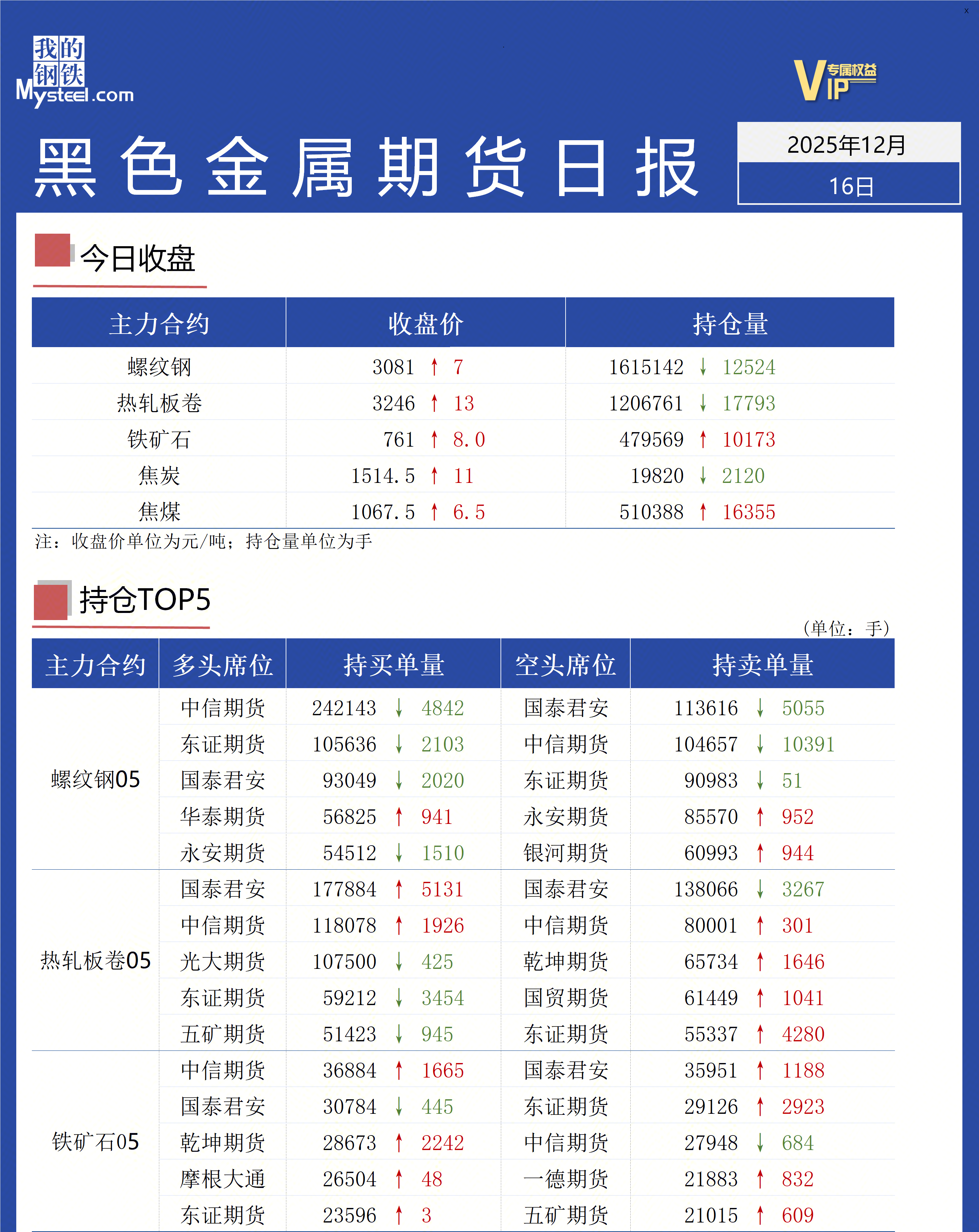 【Mysteel:黑色金属期货日报解读12月16日】研究员:金岭