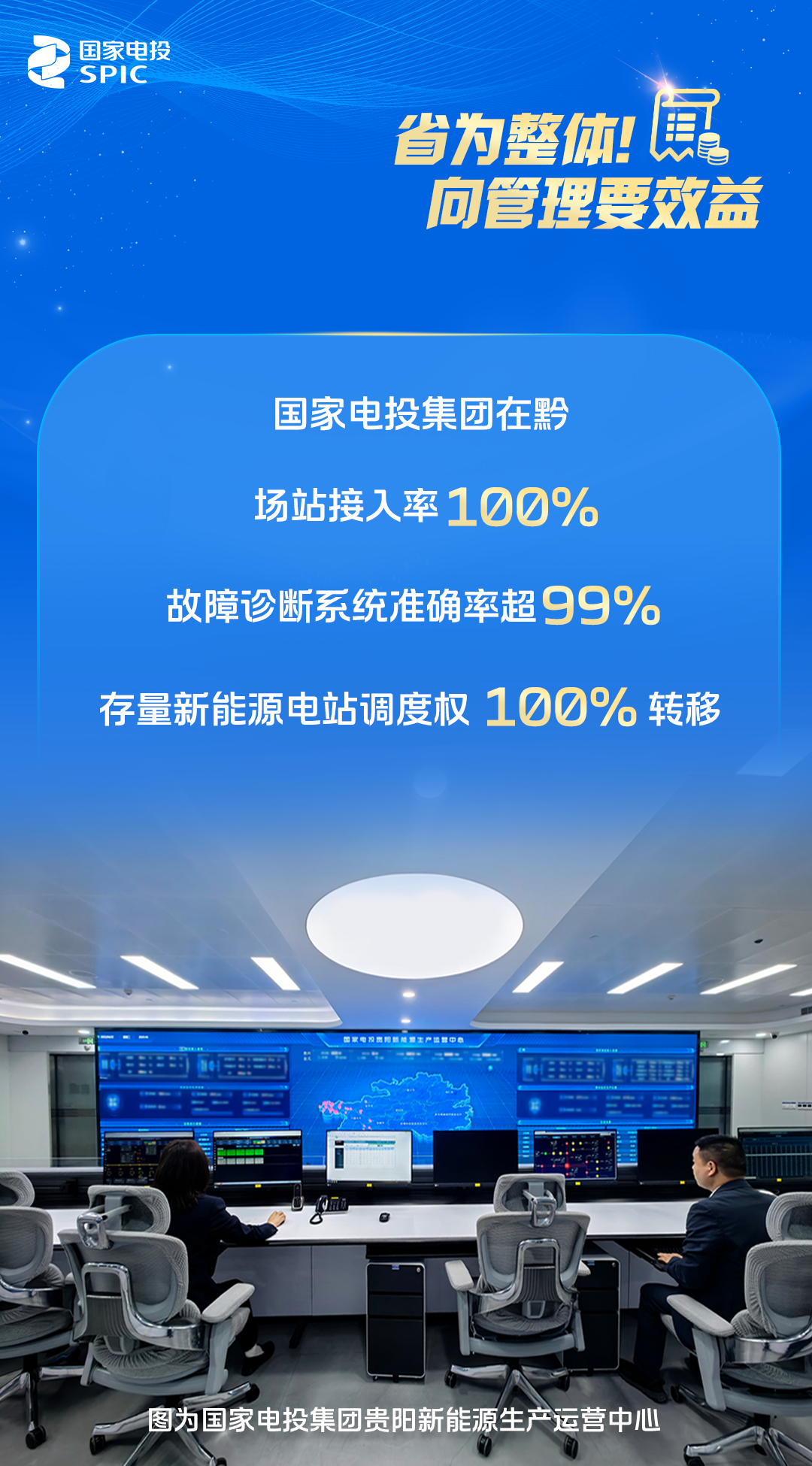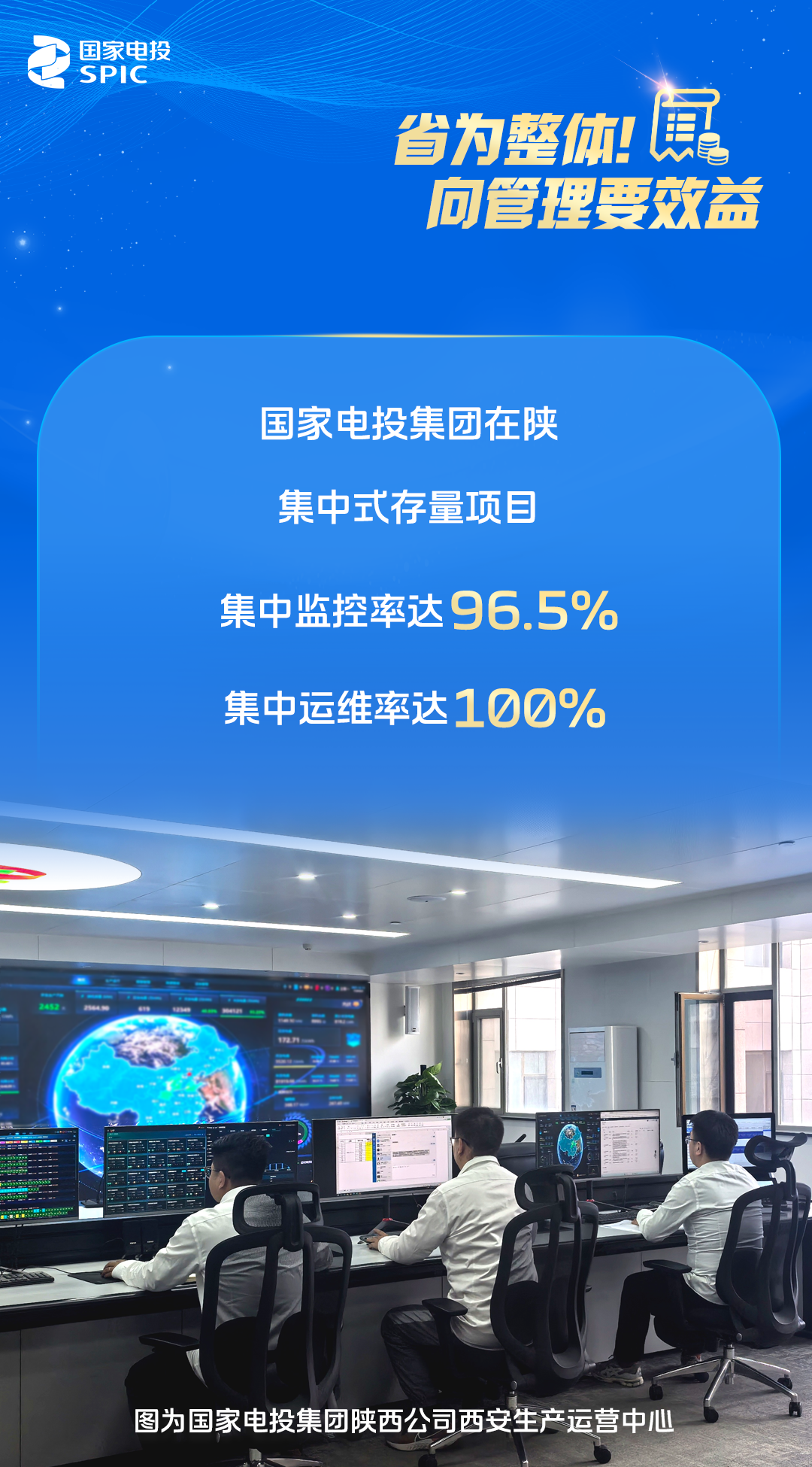 国家电投集团陕西省域牵头单位陕西公司,聚焦“集中、集约、协同”,着力通过管理创新实现效能提升,支撑“省为整体”部署落地。陕西公司聚焦运营监控集中化,升级改造西安生产运营中心,接入国家电投集团在陕33座场站“五遥”数据,覆盖集团在陕95%装机,推动监控模式向“集中调度、精细分析”跨越;牵头与国网信通公司签订电力专线框架协议,单站接入成本节约13万元。实现集中监控后,预计优化场站运行人员89人。聚焦维检保障集约化,建成7座维检中心,管理半径覆盖集团在陕所有新能源场站,形成“2小时运维圈”,通过备件“联储联备”,储备资金占用降低30%,故障响应效率提升40%。聚焦产销协同,承接兄弟单位在陕营销业务,形成以市场为导向、效益为核心、营销为牵引的大协同运营模式。