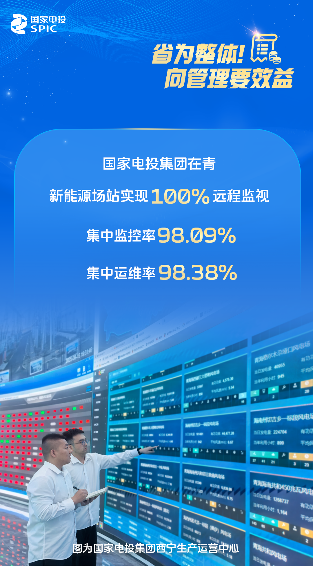 国家电投集团青海省域牵头单位黄河公司,坚定不移推进“省为整体”改革,青海省内以西宁生产运营中心为调度指挥中枢,控股与融投新能源场站数据均通过电力专网接入,100%实现全监全控;大力推进国家电投集团在青跨区域项目电力专网改造,集中监控容量13899兆瓦,集中监控率达98.09%;按“2小时工作圈”原则成立海南、格尔木、海西维检中心,实施专业化自主维检,已承接贵州金元、西藏公司、重庆公司的多个场站受托运维工作,集中运维容量13939兆瓦,集中运维率达98.38%。省外全力支持和推动省域牵头单位“省为整体”工作,成功移交了甘肃、陕西、湖南、安徽等地的新能源项目管理权,在甘、在陕项目完成电力专网改造并100%接入兰州、西安生产运营中心,跨区域资产委托管理工作取得积极进展。