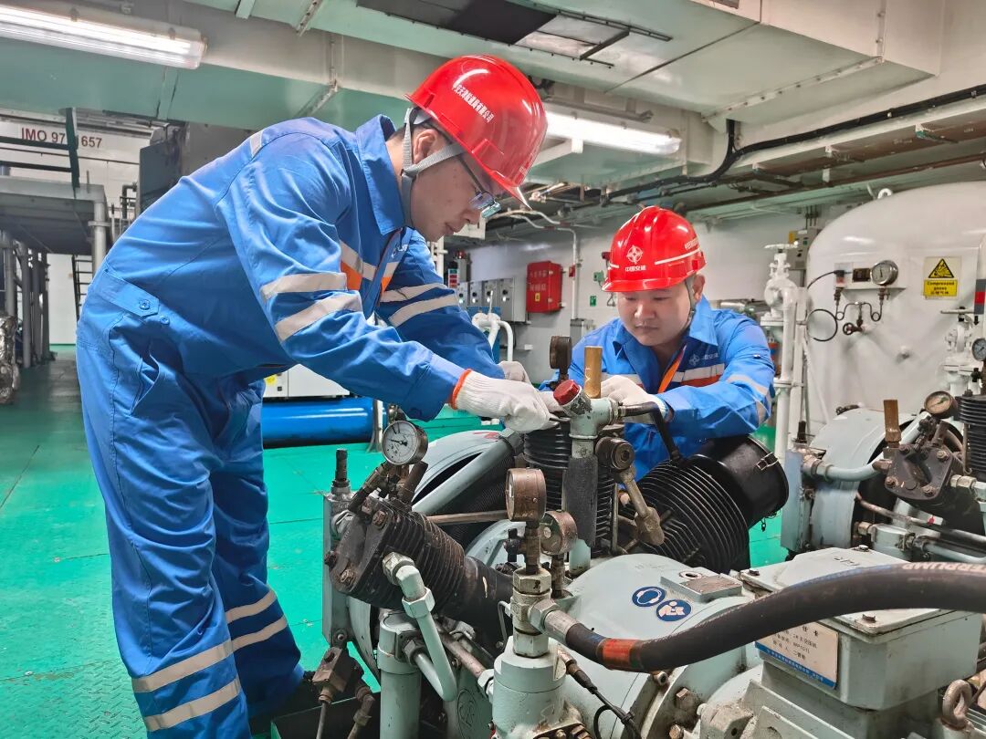主机是船舶动力系统的核心部件,作为整艘船的“心脏”,一旦失效,船舶将在复杂海流中失控偏离航线。“全船进入一级戒备状态!”张燚立即按下全船广播键,安全生产应急预案同步启动:“机舱降低主机转速,启动备用冷却回路;甲板组检查钢桩台车与吸排管,系好安全绳;驾驶台调整航向,与浪涌呈30度夹角规避冲击!”