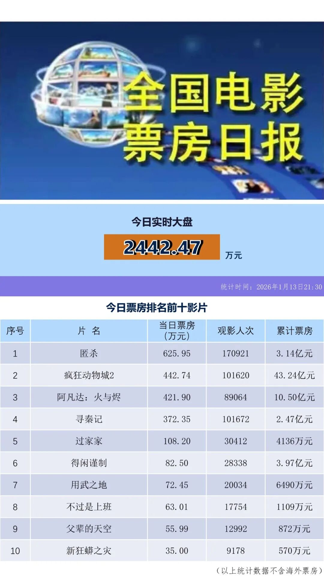 全国电影票房日报