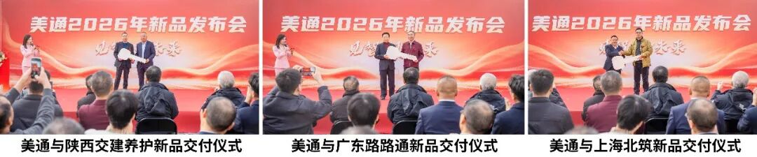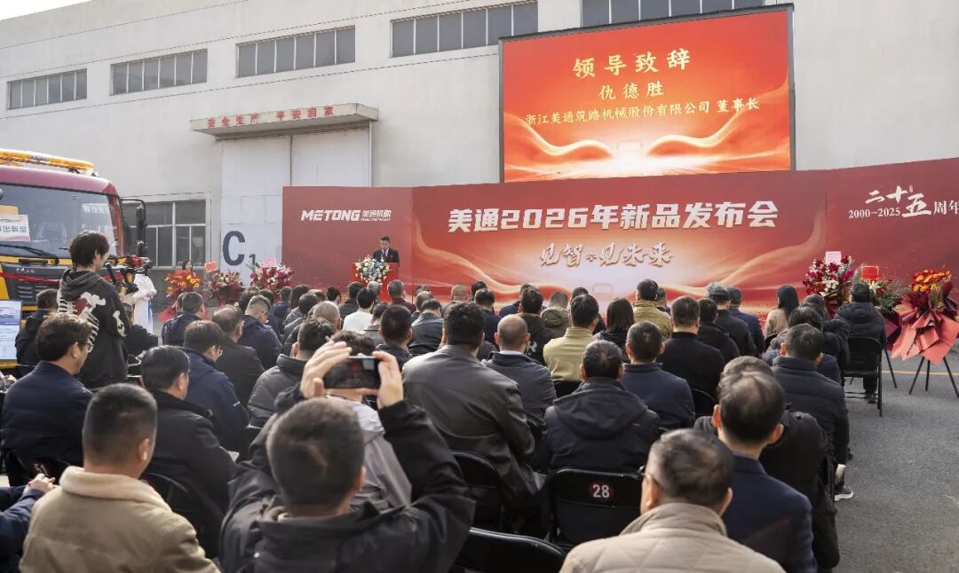 2026年1月17日,美通筑机成立二十五周年之际,【见智,见未来】新品发布会盛大启幕。中国工程机械工业协会专家委员会主任祁俊,中国工程机械工业协会专家委员会副主任李建友,中国公路学会养护与管理分会副理事长梅君,长安大学工程机械学院党委书记高雁北,中国工程机械工业协会筑养路机械分会会长焦生杰,交通运输部公路科学研究院原副总工程师黄颂昌等有关领导、学界精英及交通建设行业单位领导齐聚,共襄盛举。