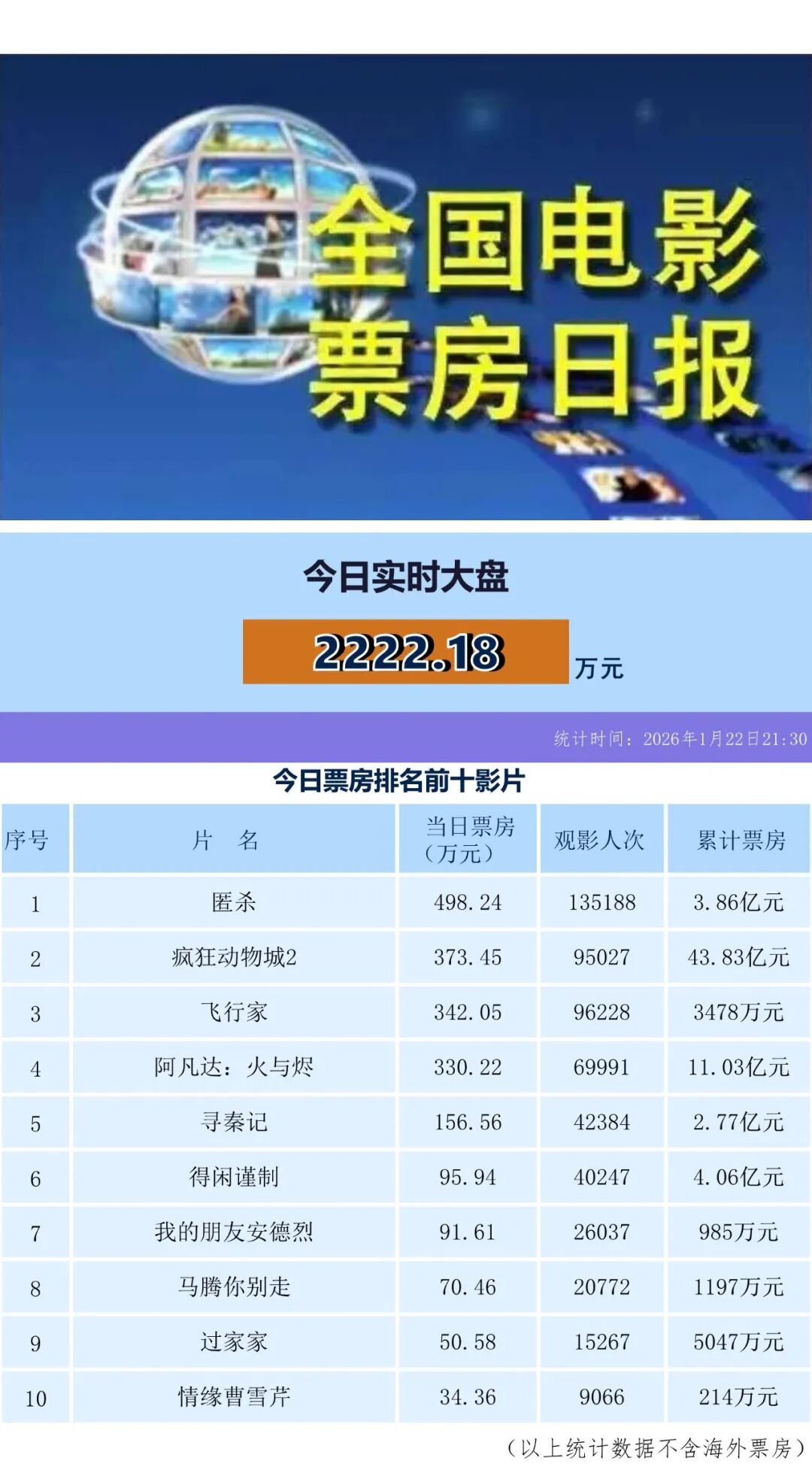 全国电影票房日报