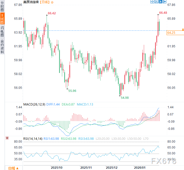 汇通财经APP讯——周五(1月30日),由于美国和伊朗可能进行对话的信号缓解了人们对油市供应中断的即时担忧,油价出现回落。周五欧市时段,美原油震荡走低,现交投于每桶64.30美元附近,日内跌幅约1.7%,此次下跌紧随前一交易日的大幅上涨,涨幅逾3%。然而,受地缘政治紧张局势升级的推动,原油价格仍有望创下数月来最大的月度涨幅。