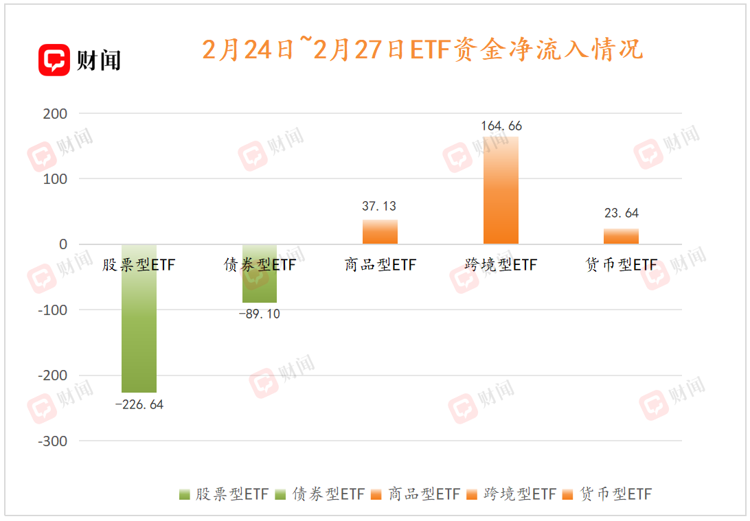 相较于大盘的温和上涨,主题ETF表现抢眼。随着海外芯片巨头的大涨,中韩半导体ETF(513310.SH)上周涨幅高达18.12%,2月27日当天IOPV溢价率达20.47%。此外,在以钨和稀土为代表的稀有金属价格快速上涨的助推下,有色金属ETF涨幅强劲,稀有金属ETF(562800.SH)、稀土ETF易方达(159715.SZ)和有色金属ETF基金(516650.SH)等代表产品涨幅分别达13.55%、11.55%和9.60%。